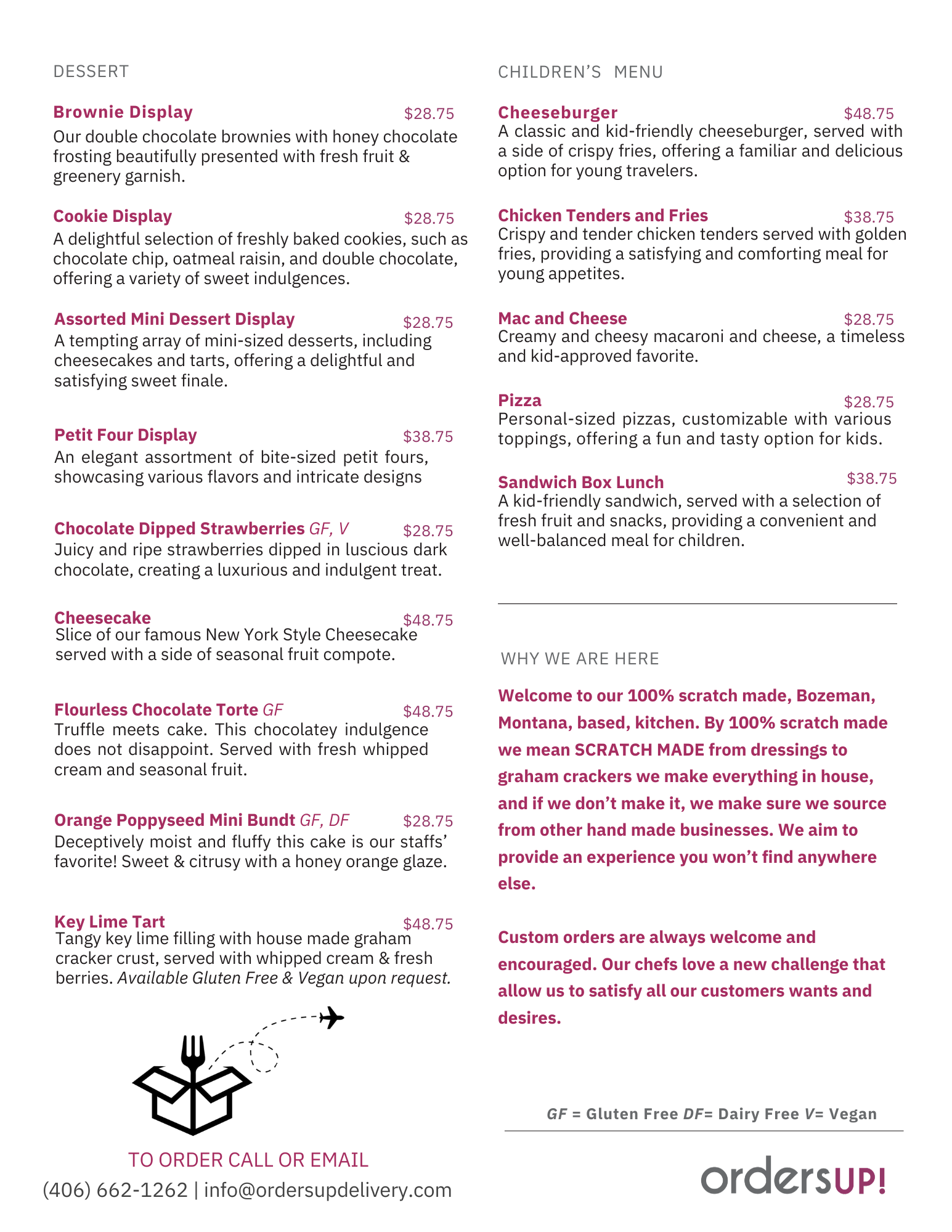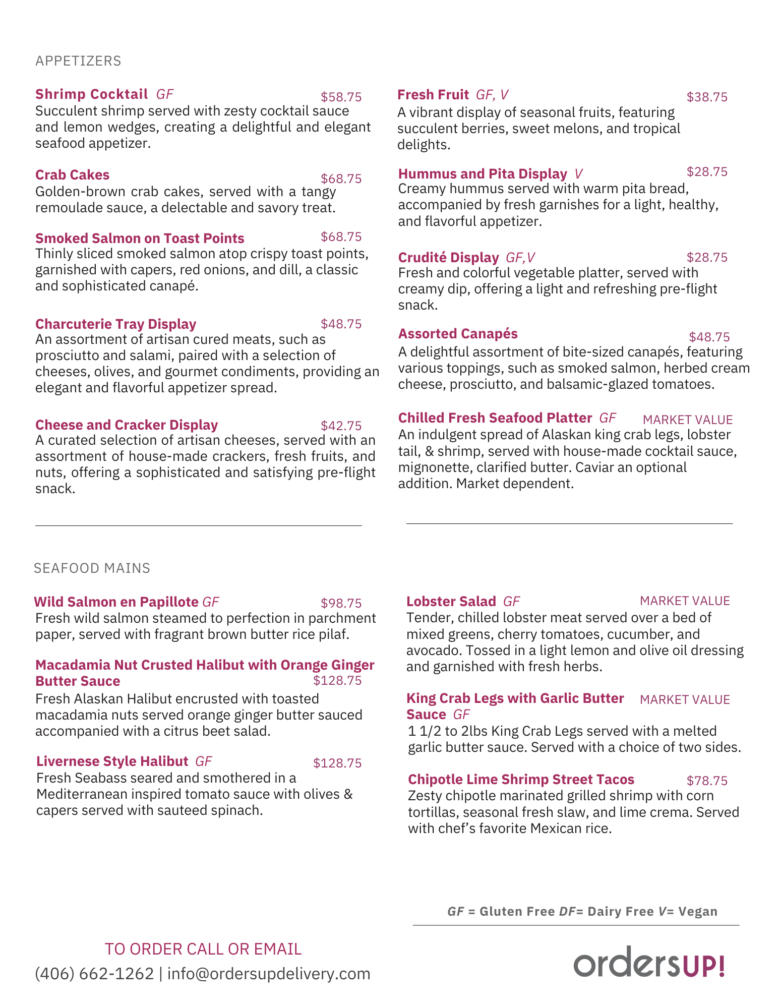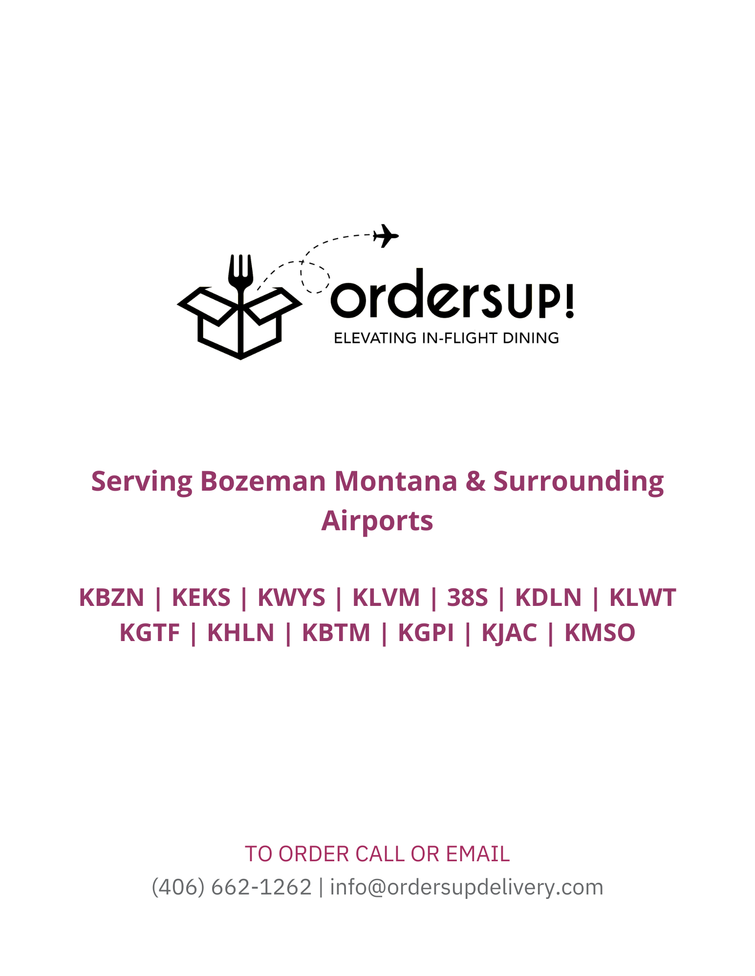 Premium flight concierge with gourmet cuisine, delivered directly to KBZN and surrounding aviation hubs.